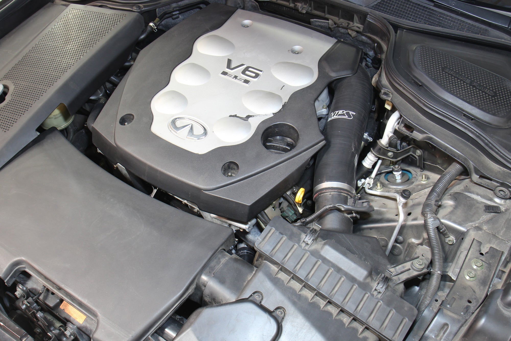 HPS High Temperature Reinforced Silicone Air Intake Hose Post MAF Tube replaces 2006-2008 Infiniti M35 3.5L V6 stock OEM restrictive hose with high temp reinforced silicon material. Unlike other aftermarket air intake kits, HPS post MAF silicone hoses improve airflow and reduce heat soak while keeping the stock well designed air box perform at high efficient level. Without any re-tuning, the HPS silicone post MAF air intake tube delivers dyno-proven performance gains of +5.9 Whp, +5.5 Ft/lbs