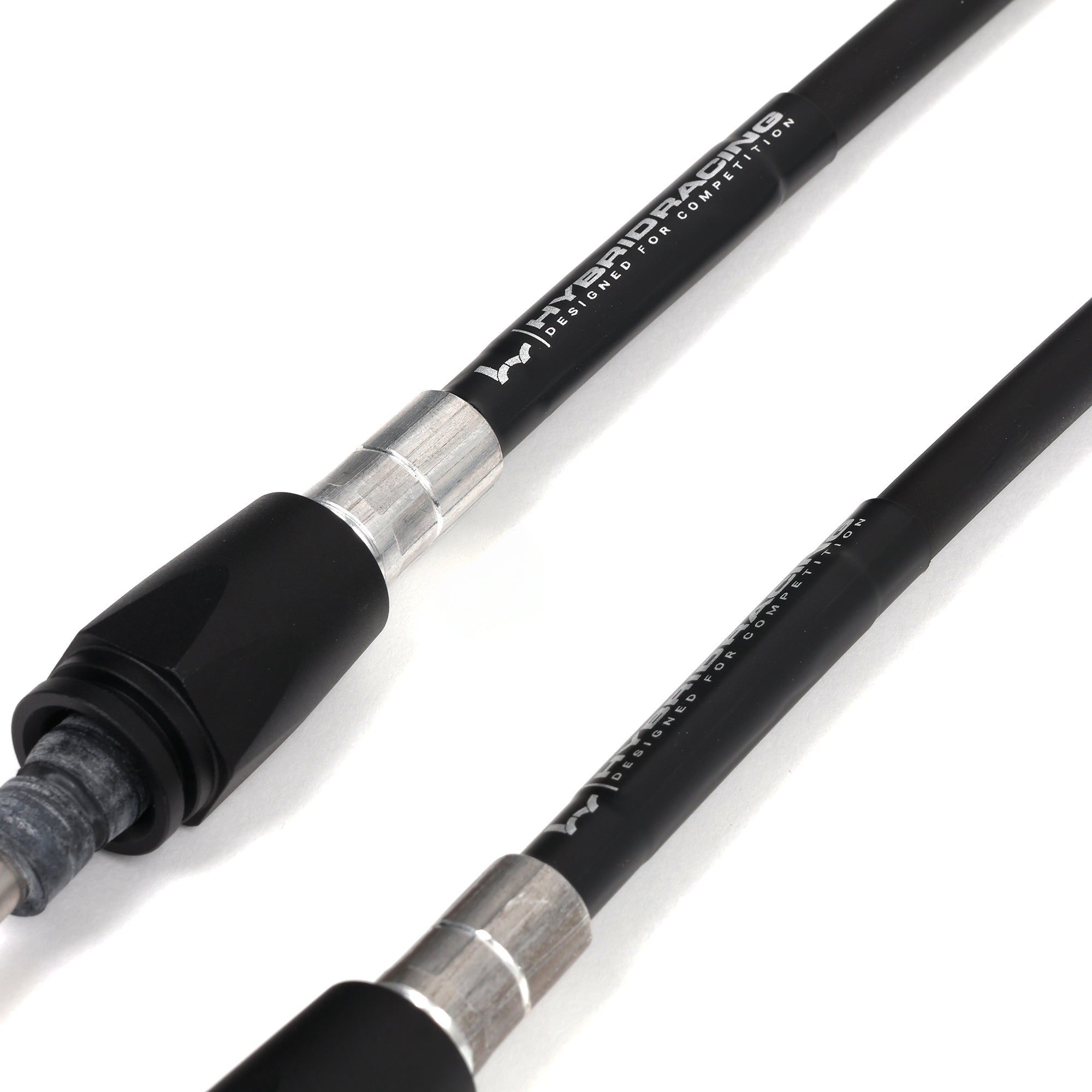 Engineered for durability, each cable set includes stainless steel push rods, stainless steel swivel support tubes (OEM uses plastic), and CNC-machined 6061 aluminum rod ends and mounting bushings. These components are heat-treated, anodized black, and laser-etched with the Hybrid Racing logo. All Hybrid Racing cables are proudly manufactured and assembled in the USA.