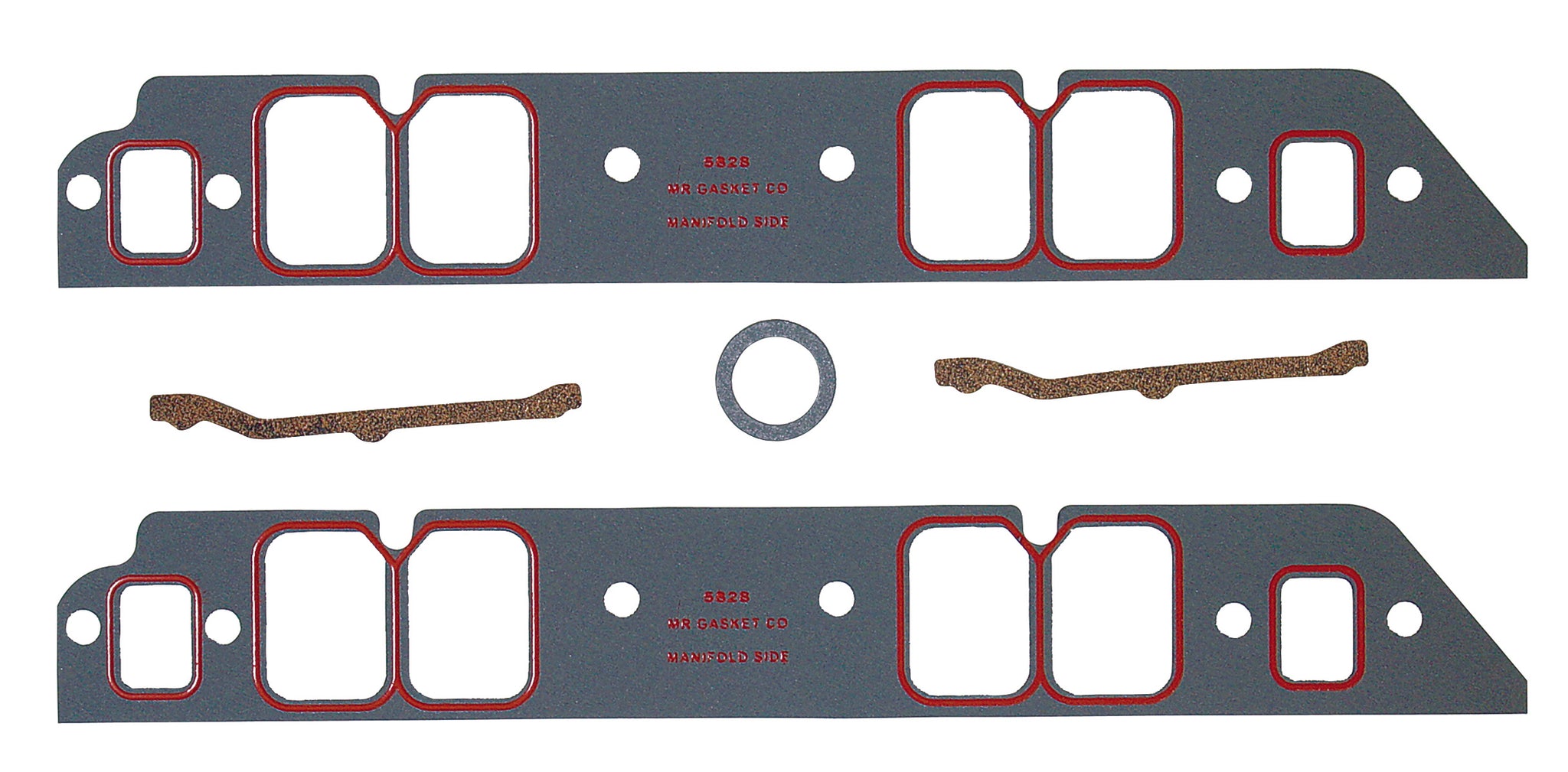 Ultra-Seal intake manifold gaskets are manufactured from cellulose/nitrile composition gasket material. Provides excellent sealing and durability. Incorporates Silicone beading around each intake and water outlet port to provide additional sealing strength on both sides of each gasket. No gasket sealer is required. For OE replacement, high-performance street, drag race, and oval track use. Includes manifold end seals and distributor gasket.