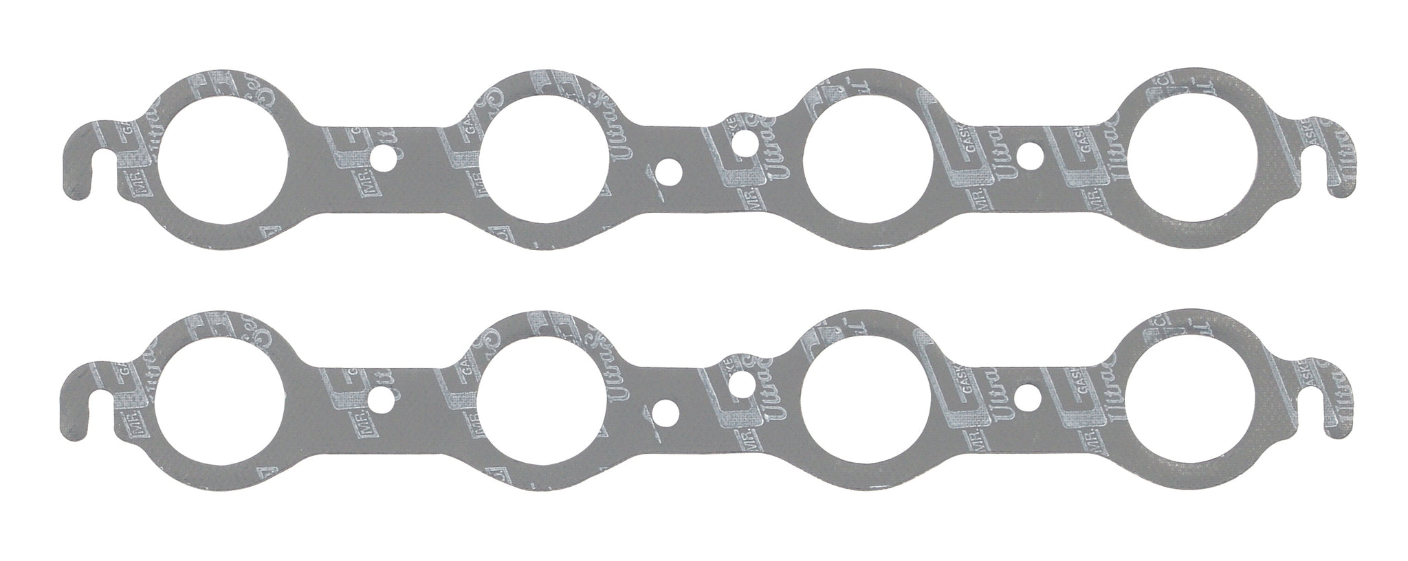 Manufactured from high-temperature steel core/graphite faced exhaust material. Expanded steel core provides stability and maximum torque retention to eliminate gasket failure. Graphite facing provides excellent heat resistance and thermal conductivity to transfer heat away from the cylinder head. Conforms to and seals minor surface irregularities. High recovery material allows header or manifold flange to stay sealed if flange loses clamp-load. Can be trimmed if necessary for modified port applications. For original equipment replacement, high performance street, drag race and oval track use.