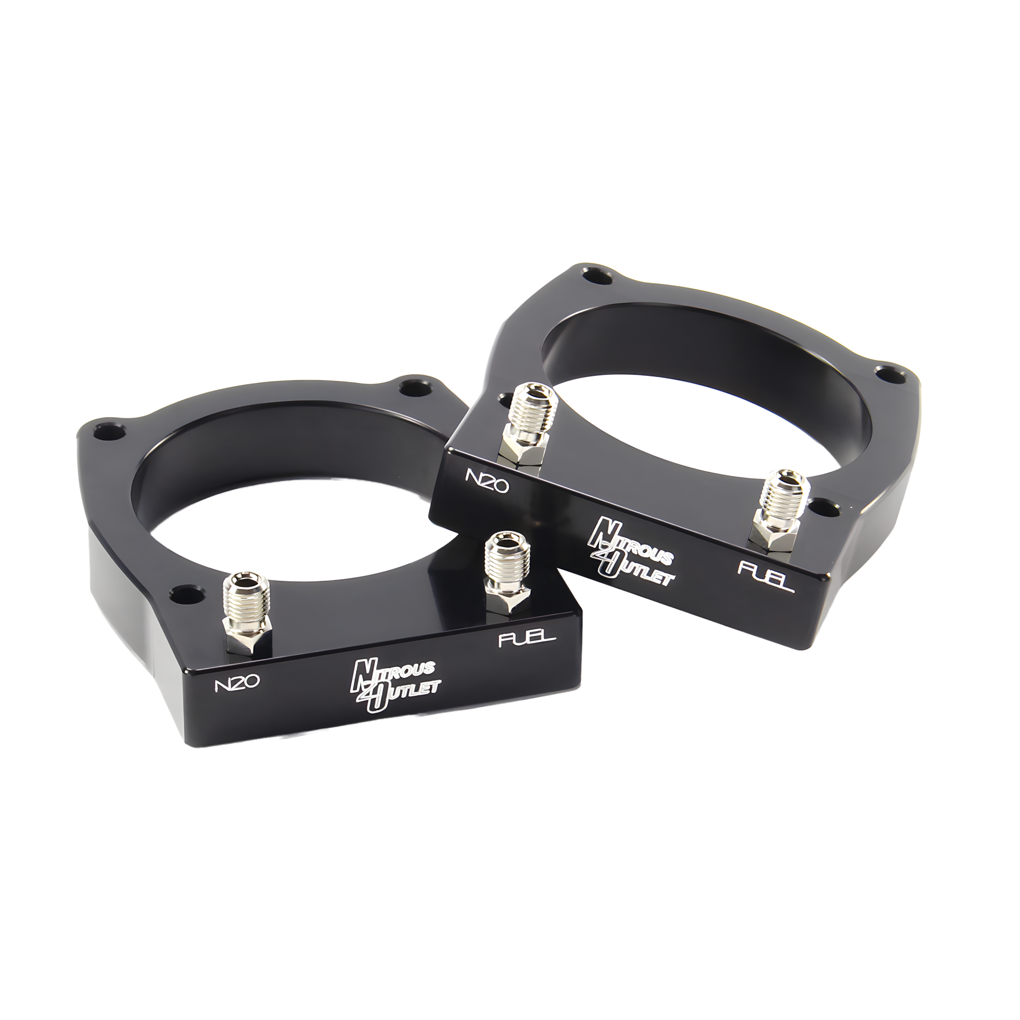 Quality Construction. All Nitrous Outlet injection plates are machined from billet aluminum, have a black anodized finish, and are CNC engraved with the Nitrous Outlet logo, and fuel and nitrous locations. All plates are flow tested to insure proper function and flow characteristics.