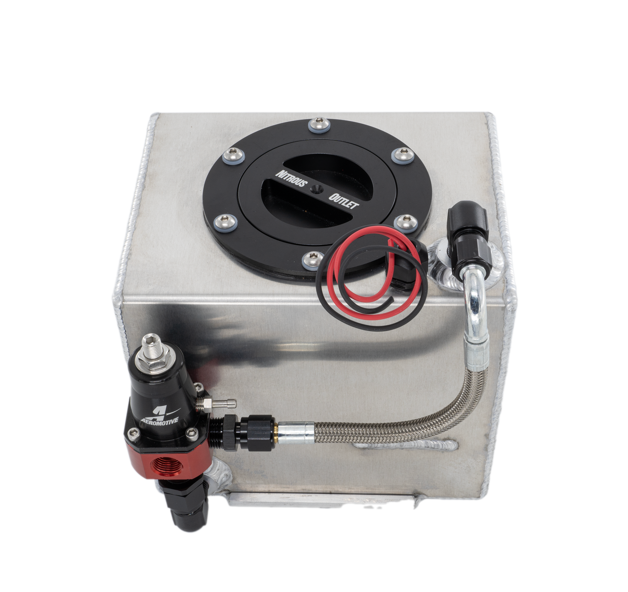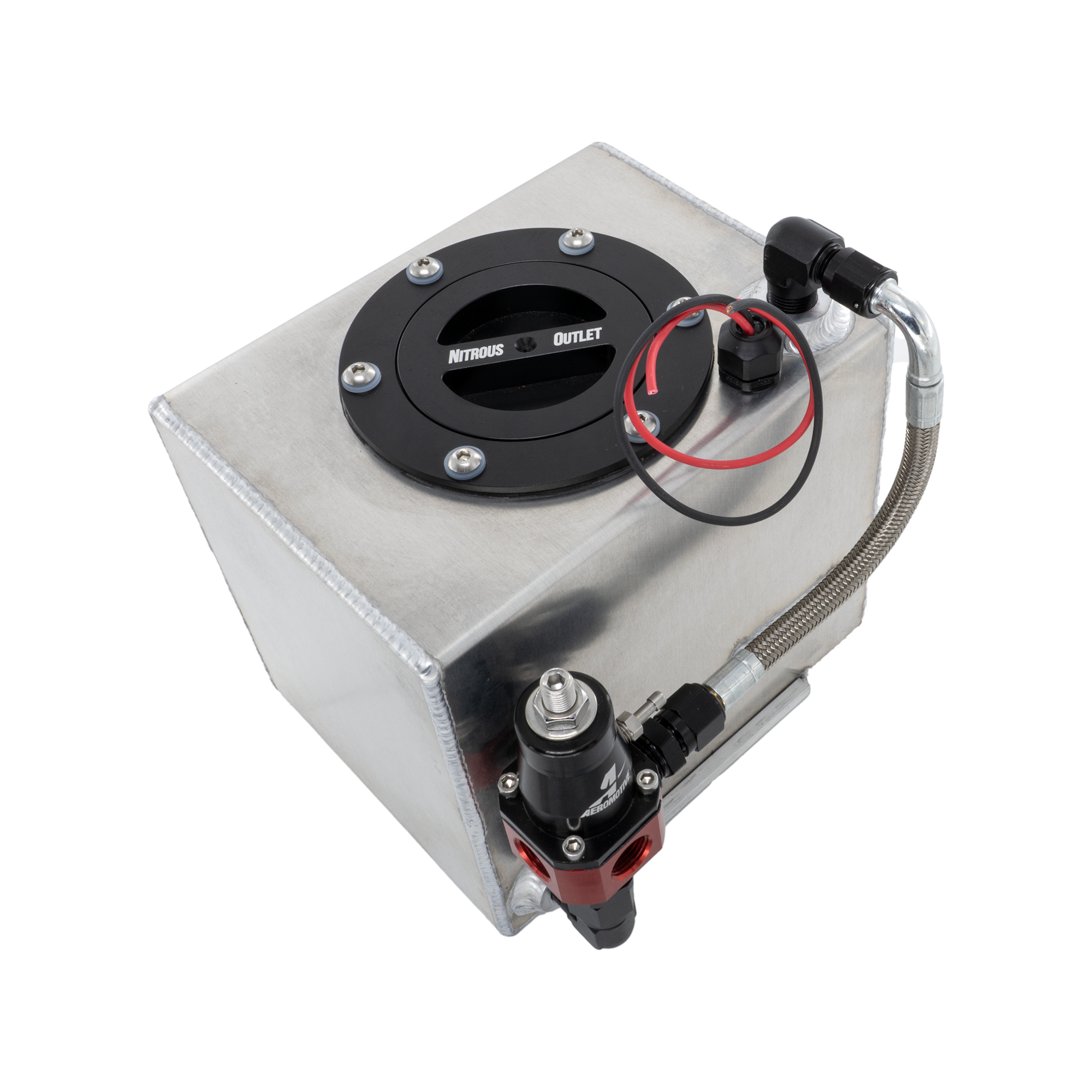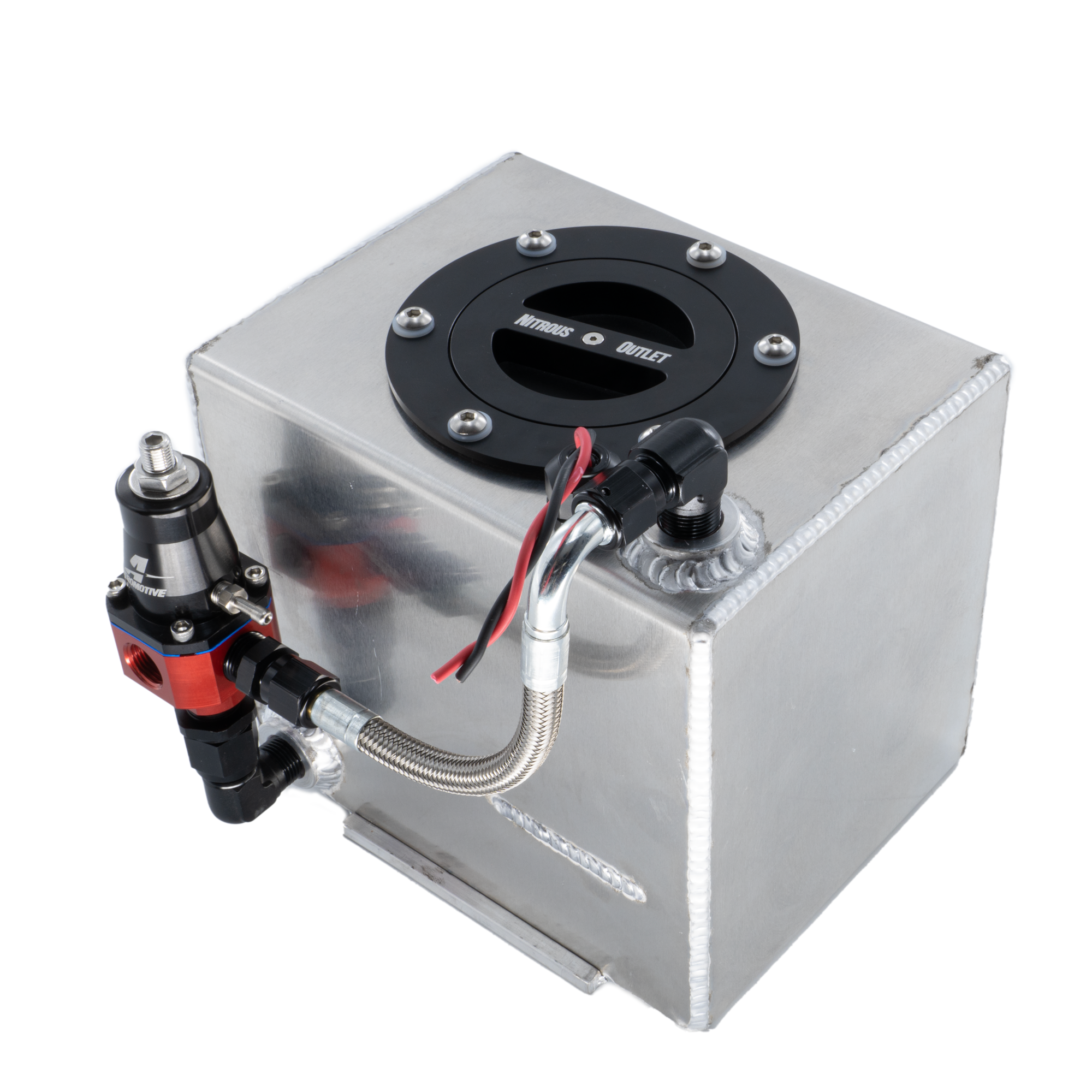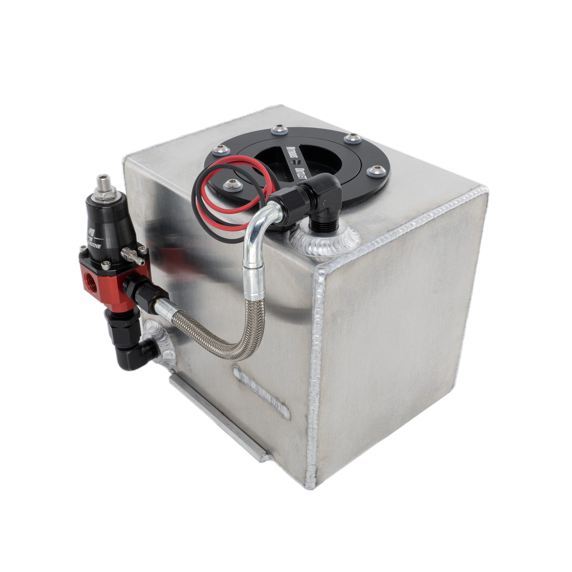 Heavy Duty Construction. Our Universal dedicated fuel systems come complete with a custom hand welded 1.61 gallon fuel cell, mounting brackets, E85 compatible in tank fuel pump, Aeromotive fuel regulator, Aeroquip 3 feet of 6 An hose, fuel lines, and fittings..