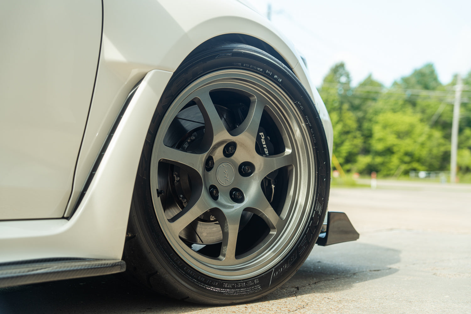 Currently available in Washi Grey, this 7-spoke, 5x120 design is simple and perfectly complements the design language of these modern chassis. The increase from 15" to 18" allows for a wider selection of performance tire options, not to mention is a necessity to clear the monstrous Brembo brakes that come on the FK8 and FL5 Type R's from the factory. The P-07F is exclusively available as 18x10.0 ET +47mm, which we've found to be the ideal flush fitment on the Civic Type R. The wheel is designed to accommodate a range of tire sizes, from the recommended 275/35/18 size up to a highly aggressive Hoosier A7 295/30/18 track tire. This allows you to choose a tire size that best suits your personal driving style.