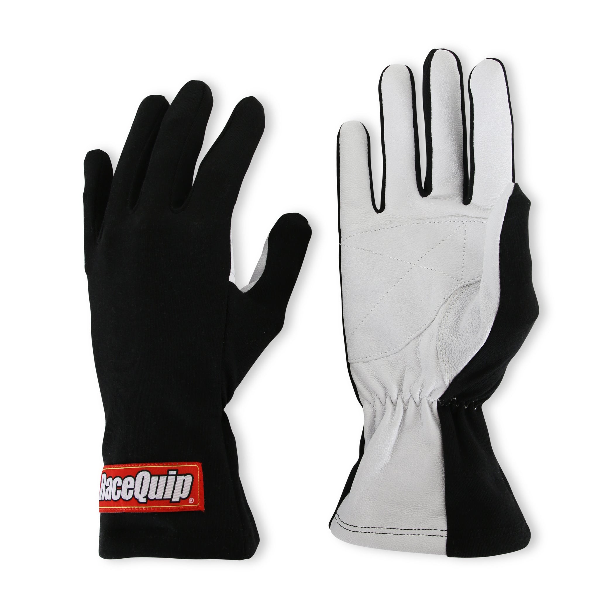 The RaceQuip 350 driving glove is a basic entry-level, one-layer, Nomex ® back, white leather palm auto racing glove. It meets the basic glove requirement with some motorsports groups. Available in black only, sizes Small - X-Large, the 350 glove is the first step to improving your grip on the steering wheel. Note: Nomex(R) construction but NO SFI rating or tag.