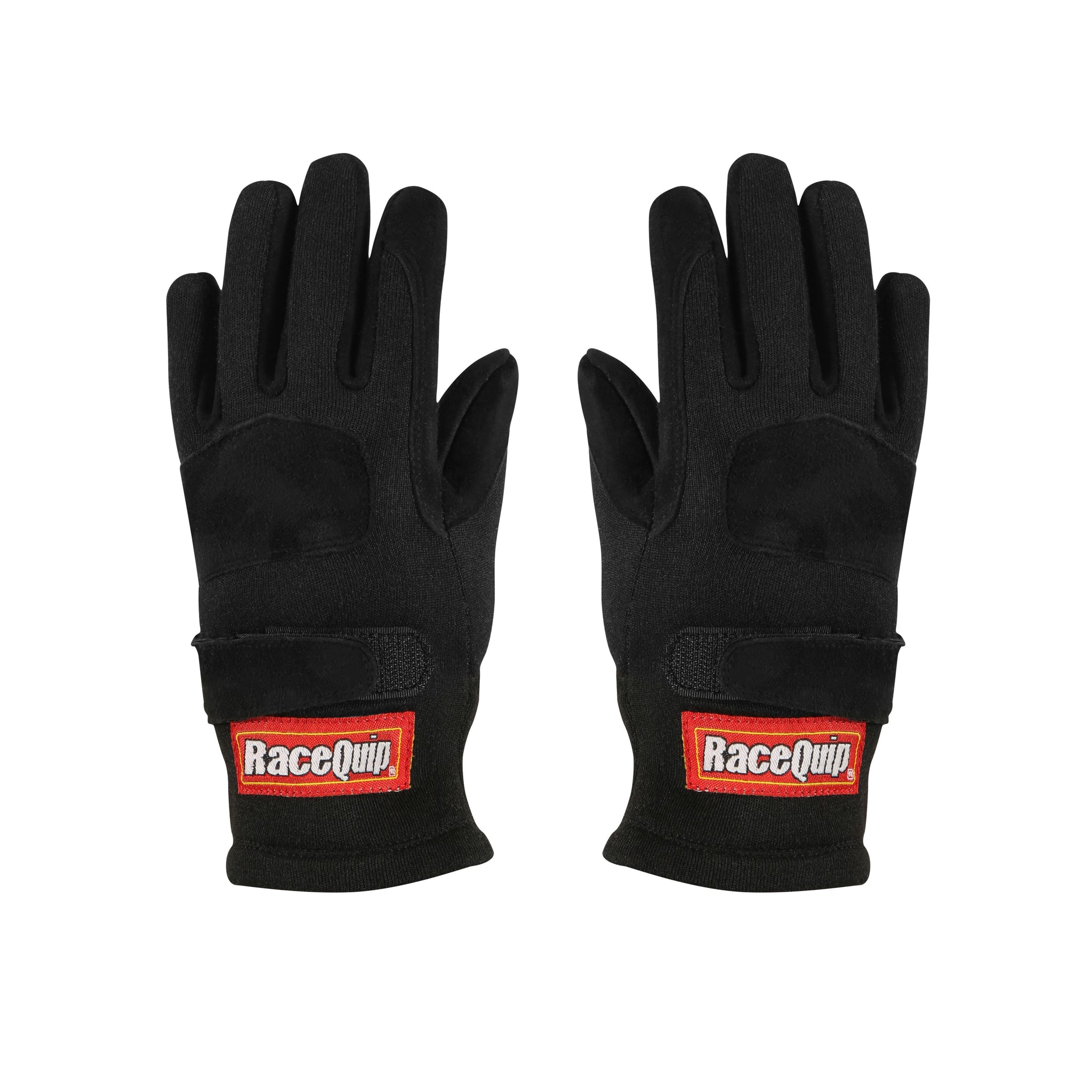 RaceQuip 355 Series Youth auto racing gloves are a soft double layer knit Nomex® SFI-5 rated glove. The high grip black suede reinforced leather palm gives this kids driving glove a unique look and feel. The knuckle pad and palm reinforcements attach to the Nomex® back in a way that promotes flexibility. Extra leather has been added between the index finger to the end of the thumb in the high-wear area. The 355 Series Youth two layer motorsports glove features a standard length gauntlet with an adjustable velcro(R) closure on the back to ensure a proper fit. These affordable multi layer Nomex(R) driving gloves are SFI 3.3/5 rated with SFI tags affixed at the wrist. Designed with the NHRA Jr. Dragster or Quarter Midget racer in mind. Available in Child sizes XXXS - Large in black.