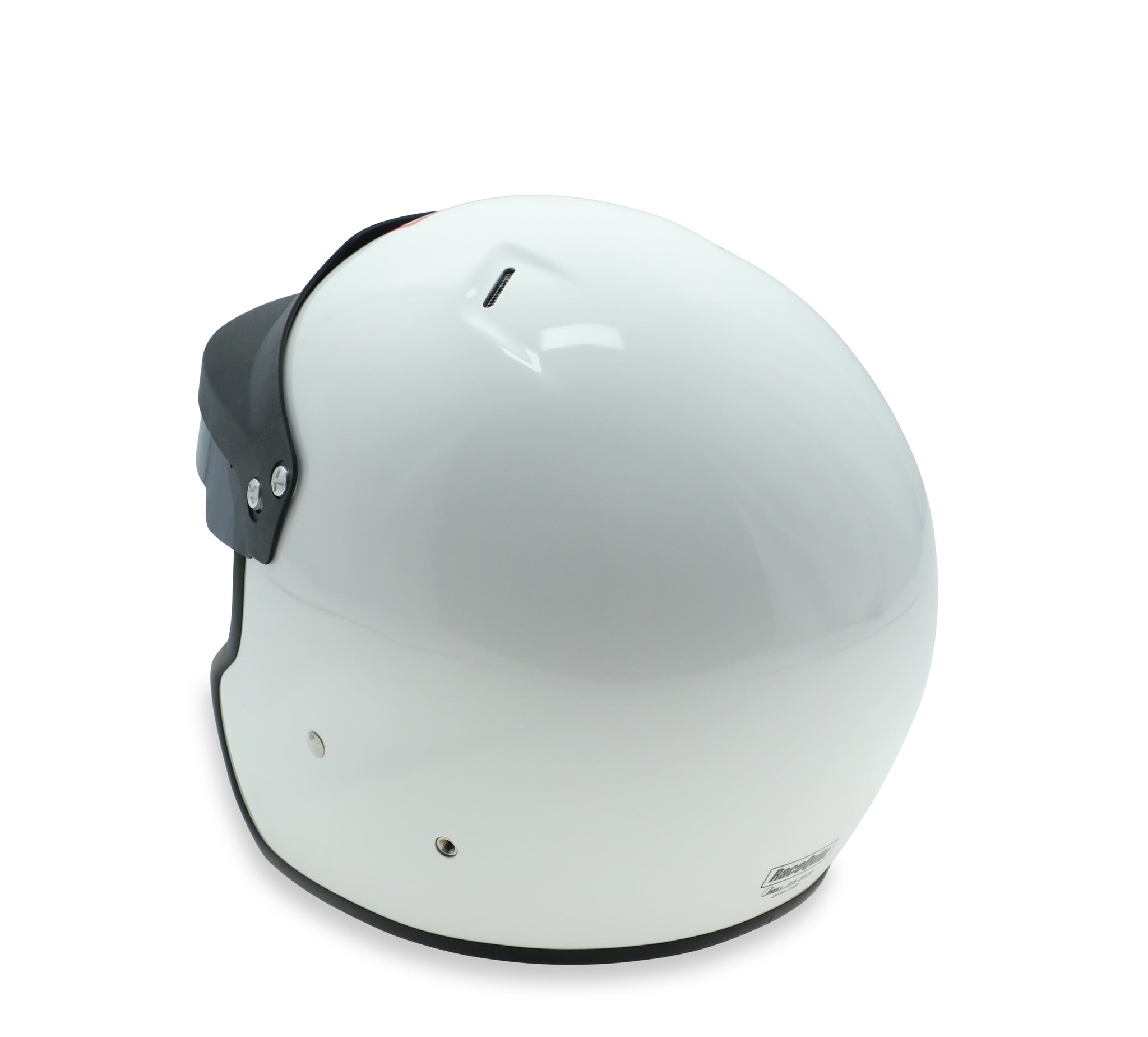 The RaceQuip OF20 is a Snell SA2020 rated open face auto racing helmet that incorporates classic styling with hand crafted production techniques. The FRP composite shell is hand laid to achieve a balance between light weight and strength. Reinforced M6 threaded HANS/HNR inserts are mated to the shell along with an expanded polystyrene (EPS) liner. HANS or other Head and Neck Restraint device anchor posts (not included) can be easily attached to the outside of the helmet using the installed M6 threaded inserts. A wide eye port provides good peripheral vision and allows the use of personal eyewear or goggles. The SA rating means that the Nomex interior and paint are fire retardant as well as the Kevlar chin strap, so the RaceQuip OF20 Helmet is suitable for use in all forms of motorsports. The comfort fit blended Nomex interior along with exhaust vents on the top of the shell help keep your scalp cool. All these features are wrapped in a hand laid FRP composite shell and the result is the outstanding value delivered by the RaceQuip OF20 Open Face helmet. If you drive a closed cockpit racecar and like the feel of an open face helmet, this is the model for you. Available in Gloss White or Gloss Black in sizes Small - 2XL. NOTE: This helmet is Snell SA2020-certified and is broadly accepted by race organizing bodies and tracks through 2030. Always verify safety rules with your sanctioning body.