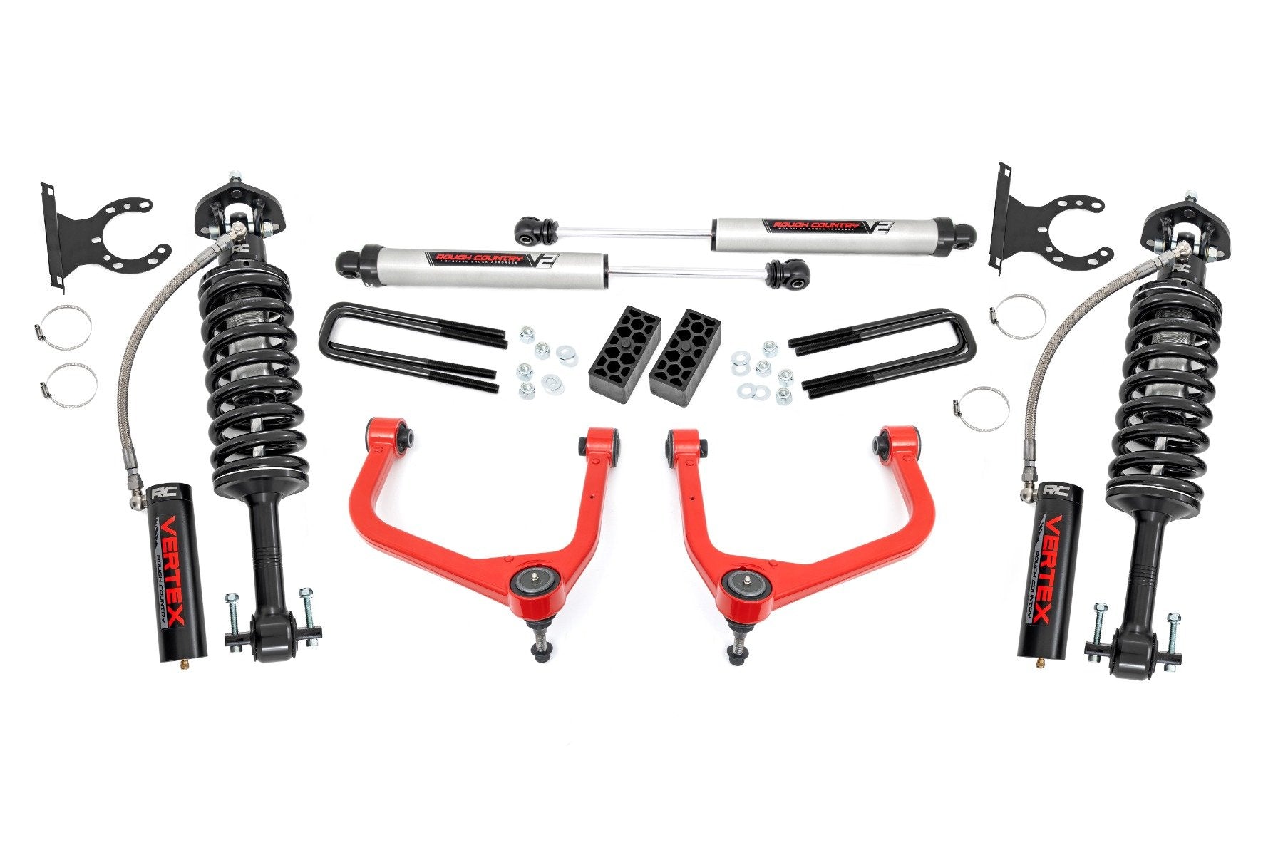 Explore New Heights: GMC's fifth-generation Sierra 1500 features an impressive all-new design that's built from the ground up, with aggressive angles and head-turning stylings that fit in beautifully when transformed with Rough Country's 3.5-inch Suspension Lift.Innovative Design and Construction: When changing a vehicle's suspension, the key to preserving ride quality is keeping the geometry of all suspension components as close to their factory angles as possible. Rough Country's 3.5in lift features a set of forged aluminum upper control arms to provide the correct suspension geometry in our most durable control arm to date! This perfect-height lift is a great choice for anyone who wants more than a simple level but doesn't quite want the full height of a 6-inch option. This kit lifts and levels the front of the vehicle with the rear, offering enough increased ground clearance to run up to 295/55R20 tires with an improved, aggressive look. We didn't want to limit you to one standard kit. Rough Country's 3.5-inch kit is configurable with all the shock options that we offer. This allows you to choose which shock series you want! Ranging from our nitrogen-charged N3 shocks to our Vertex reservoir shocks the power to choose is in your hands.Installation: Requiring the use of a strut compressor to install, an estimated timeframe of 5-6 hours is recommended to complete this full installation. This full kit can be installed at home and can be completed efficiently and quickly!Limited Lifetime Replacement Warranty: Rough Country's 3.5" Suspension Lift Kit is backed with a limited lifetime replacement warranty towards manufacturer defects. As such, the product is protected from structural and workmanship damage after the date of purchase. With our industry-leading warranty give yourself peace of mind when using Rough Country's Suspension products!