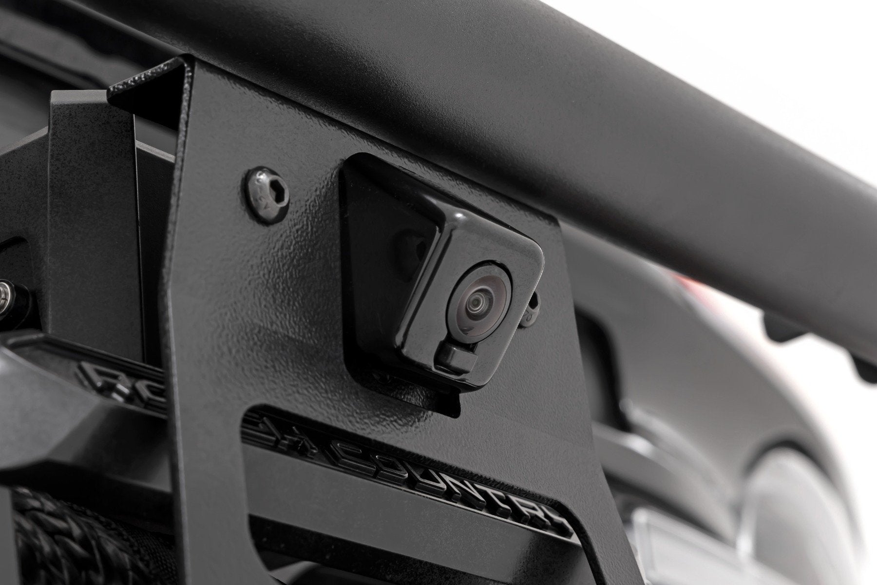 Don't let a winch installation rob you of your Ford Bronco's camera functionality -- Rough Country's Front Camera Relocation Bracket has you covered! Our bracket relocates your camera from the grille to the winch fairlead, ensuring clear visibility during all your adventures. Crafted from robust 11-gauge material and custom-bent to perfectly fit our high mount kit with safari bar, this bracket is built to last. The camera clamp bracket, made from durable 14-gauge material, adds extra strength. With a sleek, flat black powder coat finish, it not only performs but looks great too. And here's the bonus ΓÇô you can keep an eye on your winch cable entering the winch drum. Take your Bronco to the next level with Rough CountryΓÇÖs Front Camera Relocation Bracket!