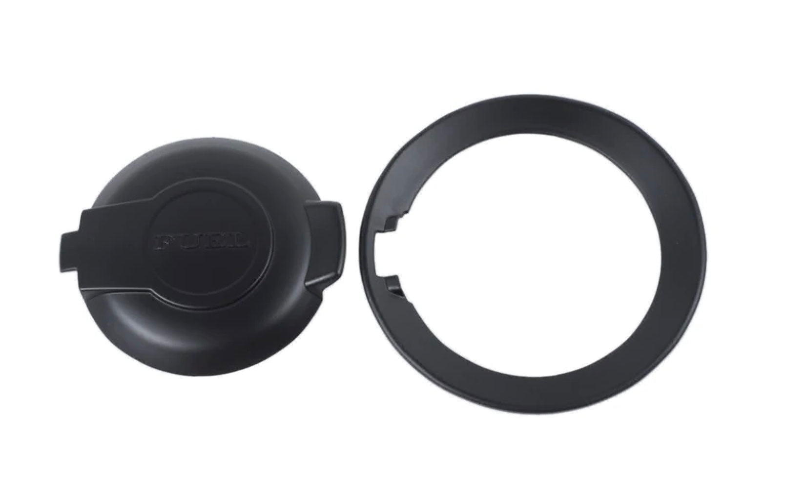 Made from ABS plastic with a flat black finish. Adheres with 3M tape to your factory fuel door for a quick change in appearance.