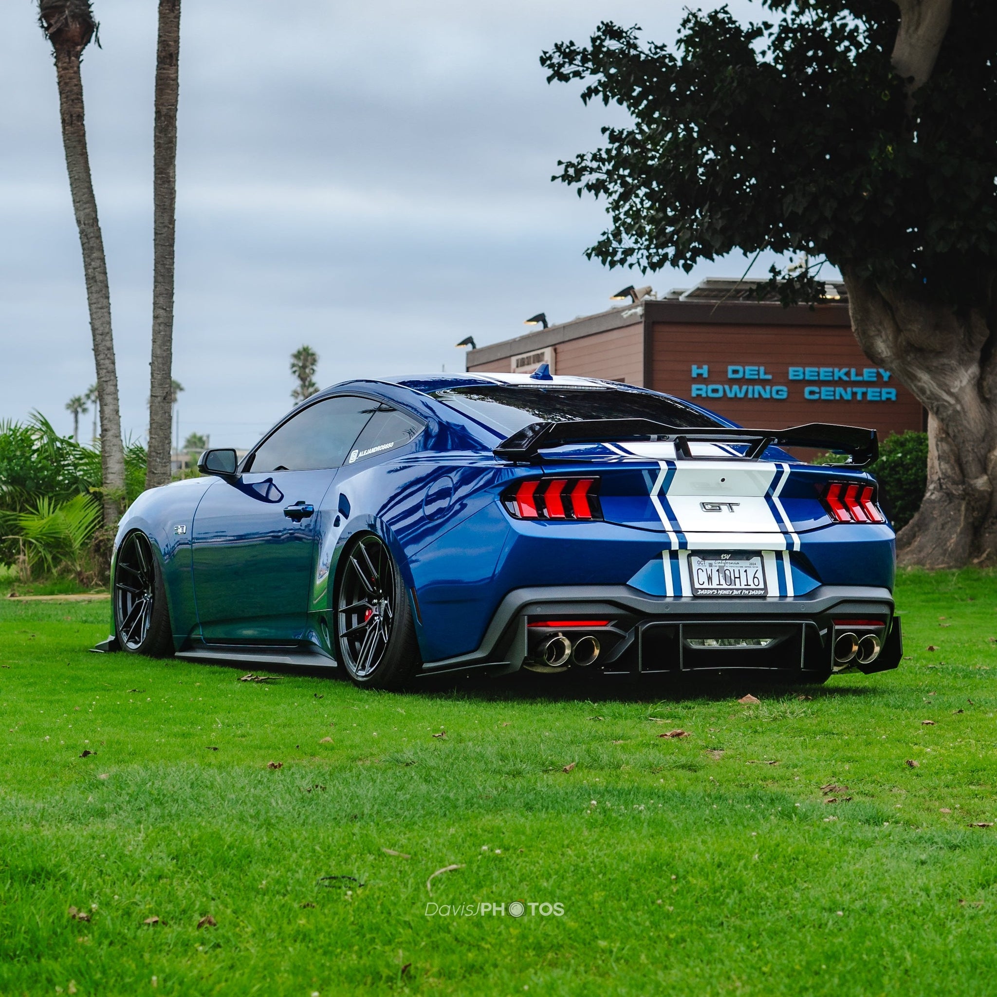 Our all new Mustang 2024-2025 GT Performance Pack Stealth Diffuser is now available for all PP models with a Quad Tip setup. This products comes with an aluminum belly pan to smooth and diffuse the air coming out from under the car that is attached to our HDPE outward facing panel that has an automotive finish. We offer this product as a one piece or three piece design, please make sure you select the right product below.