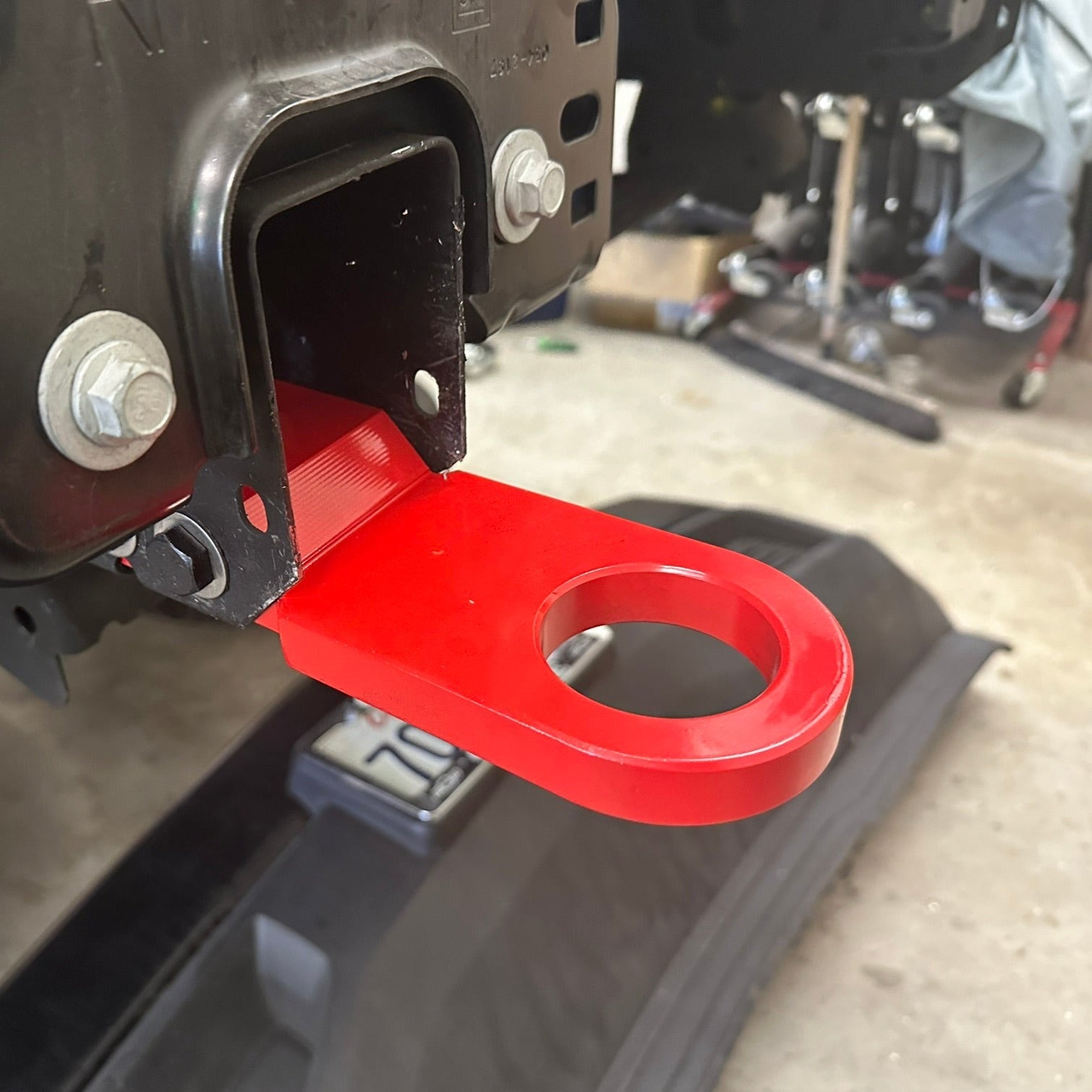 • GT4: Custom billet aluminum powder coated D-ring's with hardware to mount to the factory frame. Rated for 8+ tons on a static pull. (Sold in pairs)