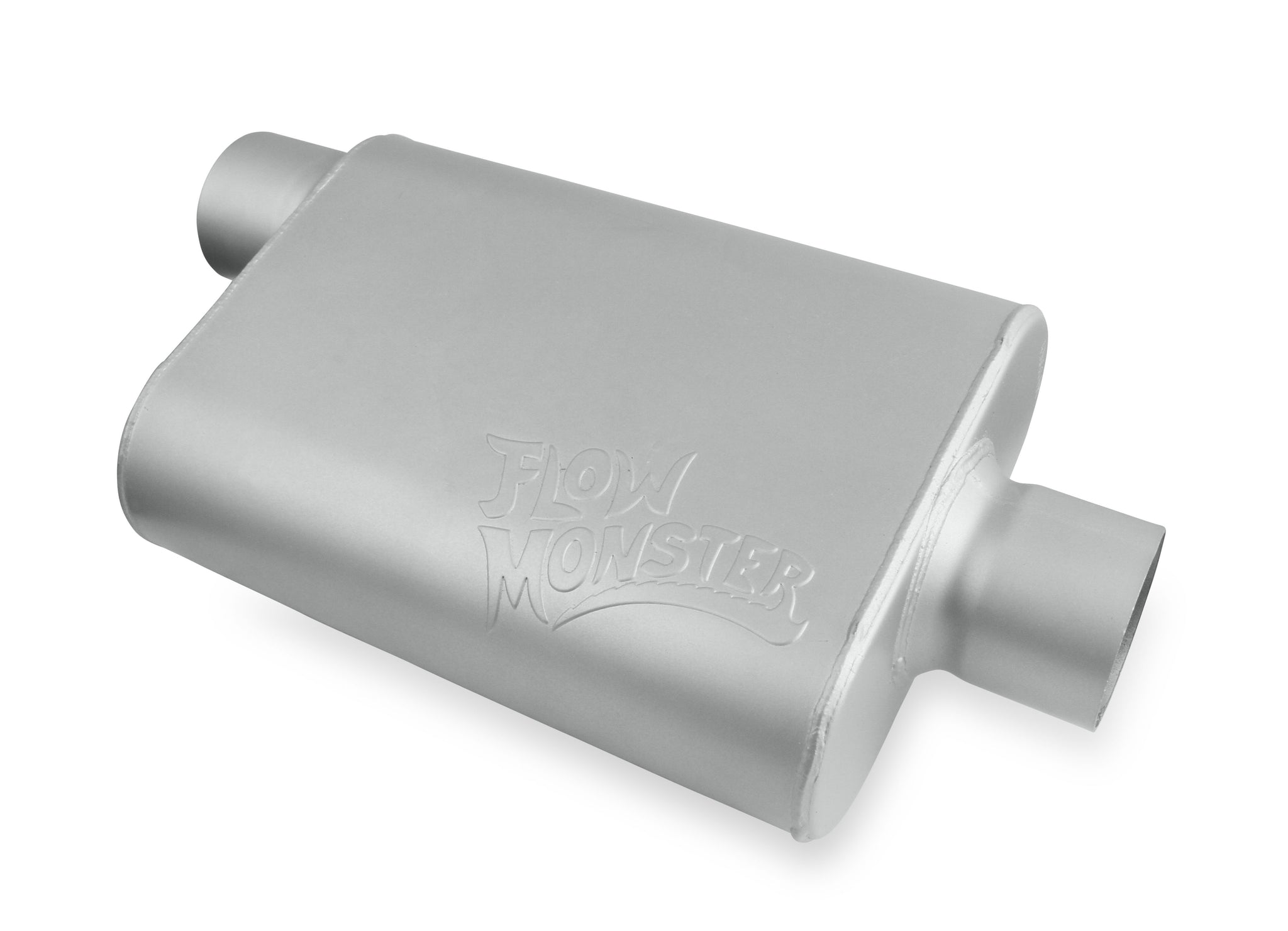 1|Hidden beneath your ride lies a powerful creature destined to dominate. FlowMonster chambered mufflers create an aggressive exhaust note giving a powerful voice to your car/truck/SUV. FlowMonster mufflers are constructed of 16-gauge aluminized steel and are 100% MIG welded for maximum strength and durability. The chambered design cancels out unwanted frequencies with no packing producing an aggressive exhaust note that will not change with time. FlowMonster mufflers are coated with high heat resistant silver paint for an aggressive look under your car. Hear the Roar with FlowMonster!