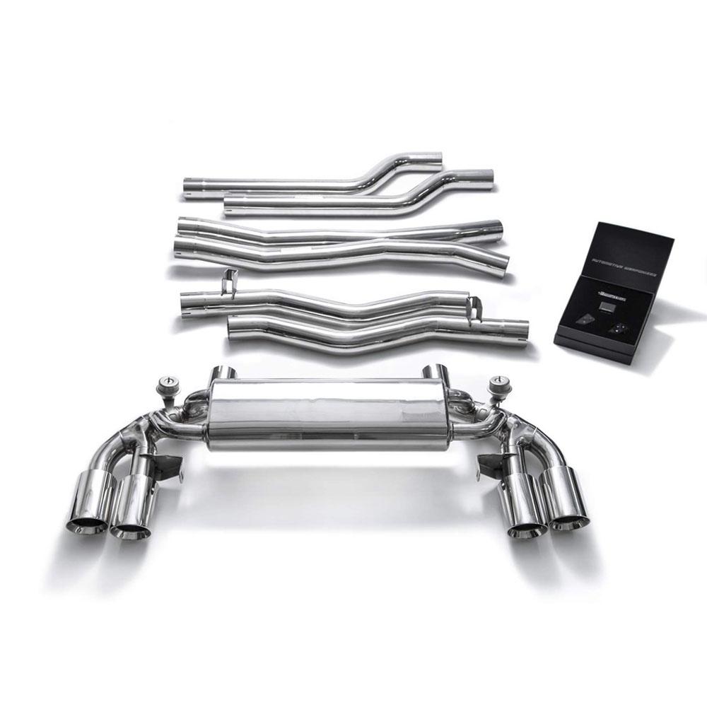 Enhance your F90 M5 by adding the ARMYTRIX Valvetronic Stainless Steel Exhaust System. This system will increase power, reduce weight, and improve sound. This precision-made performance system delivers more power, especially in the low and mid rev range, the effect on the sound is significant, adding a deep resonant sporty sound, but at the same time neutralizes the annoying frequencies in the most critical rpm range. Complete the look with a set of four sporty chrome polished silver tailpipes. ARMYTRIX exhaust systems differ from other brand's exhaust systems with their unique "Throttle Pedal Sensor and Engine RPM Signal Auto Functions".
