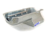 This Small Block Chevy "T" sump drag race oil pan is for 80-85 blocks with a right side dipstick. It has a 7-1/2" deep, 9-1/2" long by 10-1/2" wide sump and an 7 qt system capacity. This pan requires a short oil filter, and one of our pickups. Will work with stock or aftermarket starters.