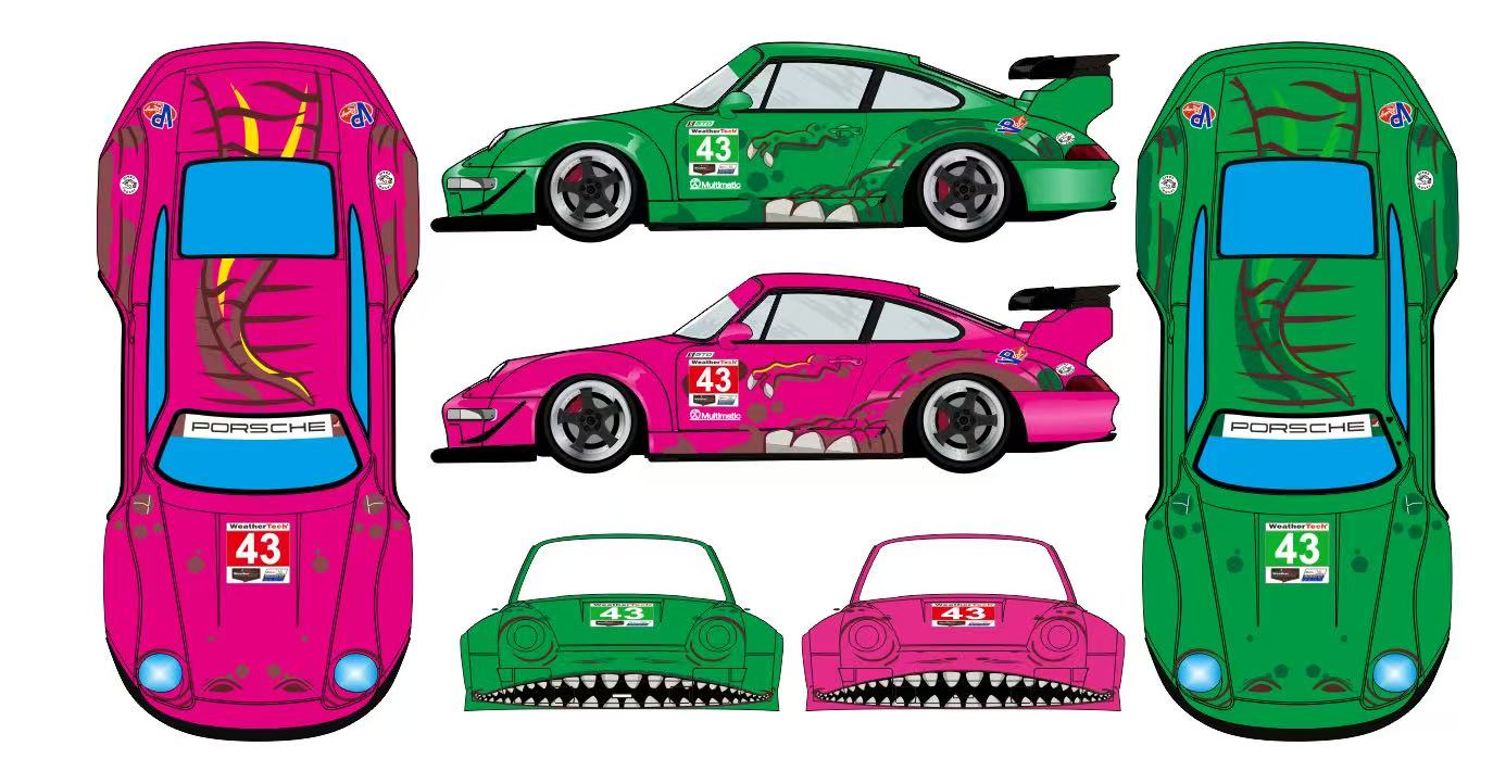 Flame Porsche RWB 964 Dinosaur Livery Rexy or Roxy Pink/Green 1:64