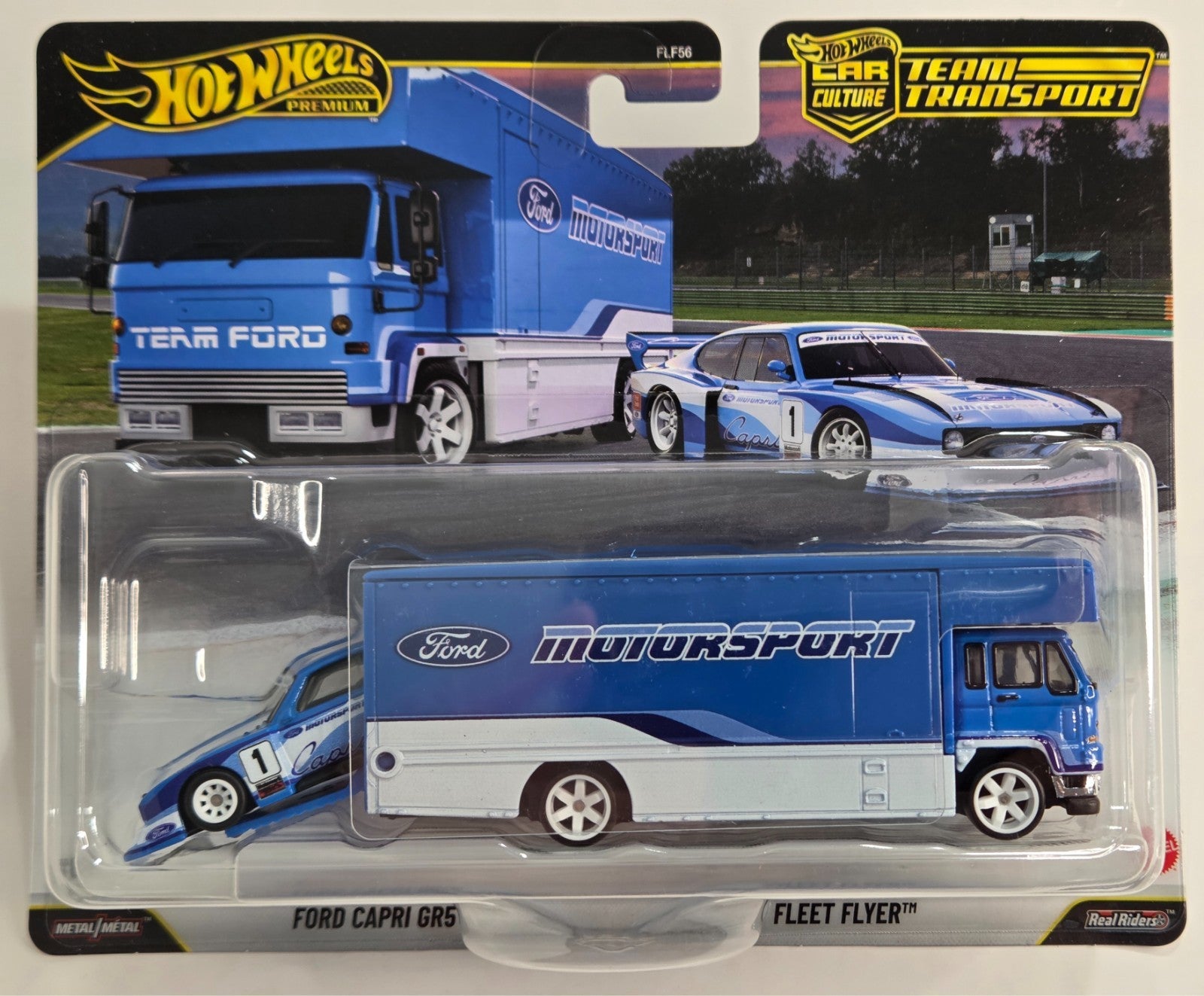 # Ford Capri GR5 & Fleet Flyer Ford Motorsport JHX89 Hot Wheels Team Transport #88 The Ford Capri GR5 paired with the Fleet Flyer Ford Motorsport JHX89 represents a premium addition to any Hot Wheels collection. This Team Transport set #88 combines two distinctly engineered vehicles that showcase Ford's motorsport heritage. The Capri GR5 delivers classic European performance styling, while the Fleet Flyer brings contemporary Ford racing aesthetics. Both vehicles feature precision die-cast construction with detailed paint applications and authentic wheel designs. Ideal for collectors seeking rare team transport configurations and enthusiasts who appreciate Ford's competitive motorsport legacy across generations.