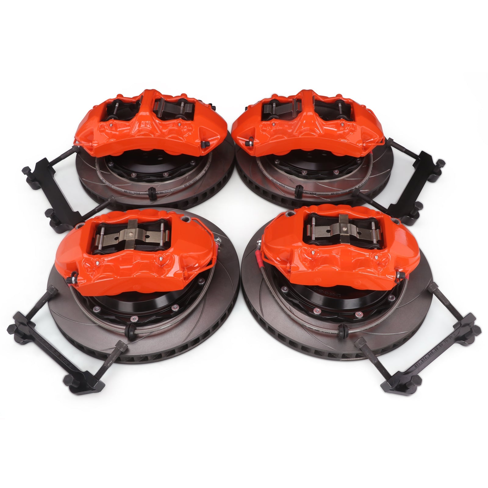 - Kit includes calipers, rotors, brake lines, pads, and all hardware for a seamless installation