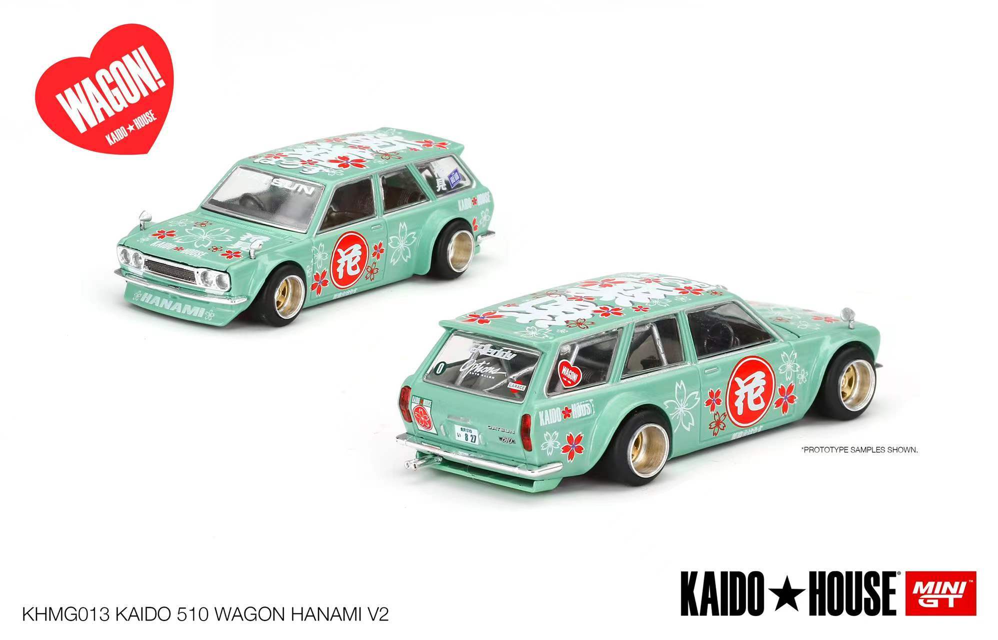 Kaido House x Mini GT Datsun Kaido 510 Wagon Hanami V1 Green #013 1/64