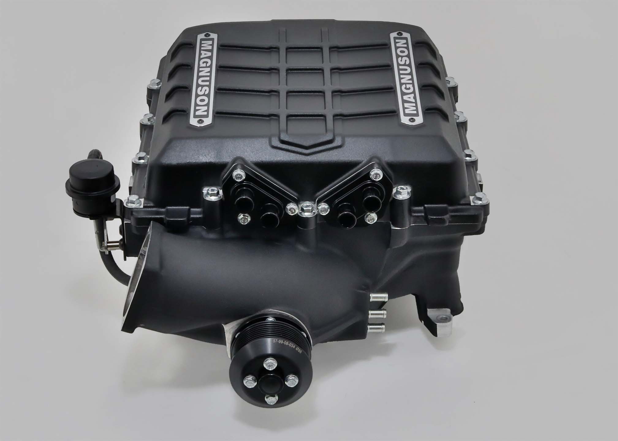 At its core is Eatonβs proven TVS2650 high-helix rotor group β the same OEM-validated foundation capable of supporting well over 1,000 rear-wheel horsepower. Magnusonβs engineers took that proven platform and built an all-new high-speed airflow distribution system around it, leveraging Dynamic Flow Technology (DFT). With a large discharge port feeding a custom intercooler with billet endcaps, the Magnum keeps intake temps down and airflow consistent. Dual coolant passages in the lid ensure rock-solid cooling under any load, from towing to track.