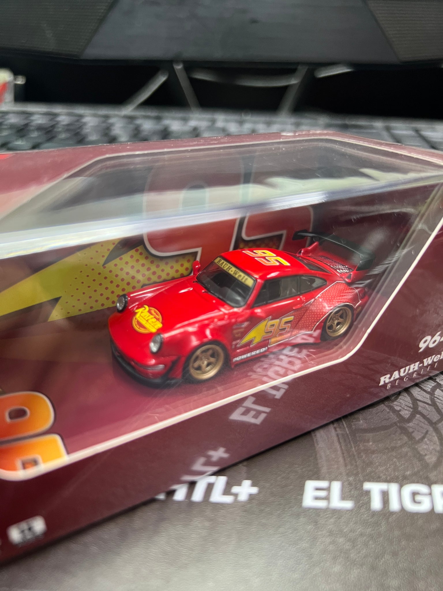 Experience the iconic Lightning McQueen reimagined as a Porsche RWB wide-body masterpiece. This collectible features two distinct versions, each showcasing aggressive aerodynamics, widened fenders, and the legendary RWB styling that transforms the beloved character into a high-performance machine. Perfect for enthusiasts who appreciate both automotive culture and Pixar nostalgia, these detailed models capture the essence of modified car aesthetics with precision craftsmanship. Display-worthy pieces that celebrate the intersection of fantasy and real-world tuning passion.