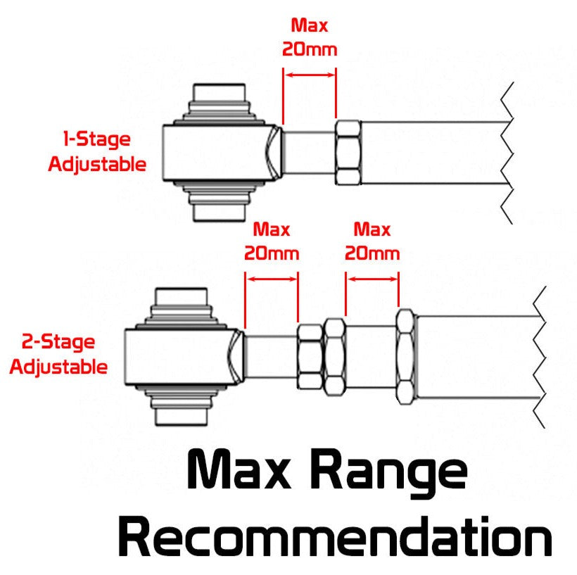 These camber arms are made with high-tensile steel alloy and powder-coated to prevent corrosion. Perfect for road warriors looking to stiffen up their ride and adjust camber at ease. Factory spec rubber bushings helps reduce noise and ride quality.
