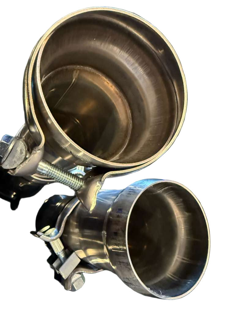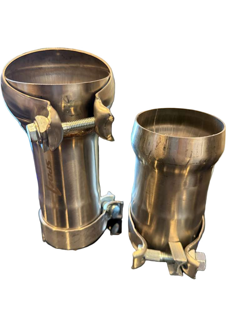 Fabricate with confidence using the SPDZ1 Stainless Steel Slip-Fit Exhaust Connector Kit, designed in-house for builders who demand strength, precision, and flexibility. This exclusive SPDZ1 design transitions from 2.5” slip fit to 3” slip fit, featuring a ball-style fitting on one end and a socket-style connection on the other—ideal for creating a joint that allows slight movement or flex without leaks.