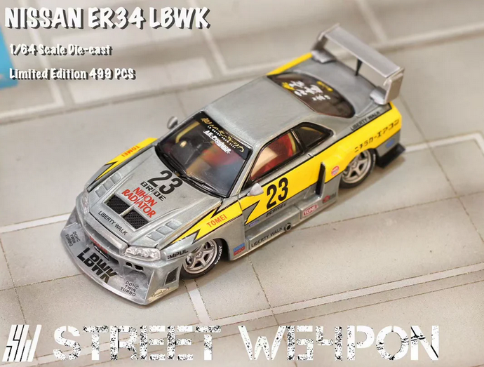 Street Weapon Nissan Skyline GTR BNR34 LBWK SphereLite Limited Brushed Steel Model